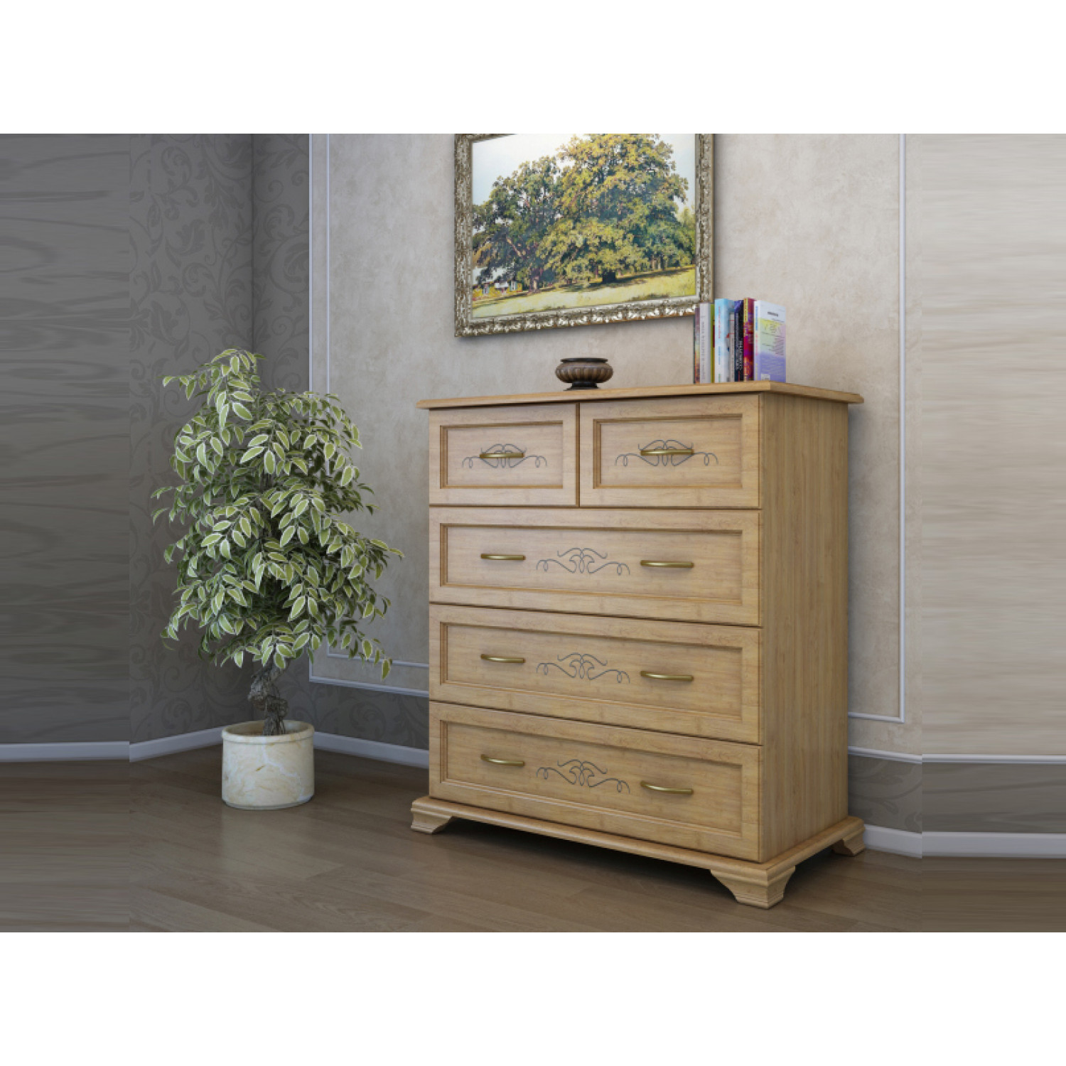 Деревянный комод Таката выполнен из массива сосны,в данной модели вы можете самостоятельно указать цвет и материал,выбрав соответствующую опцию.