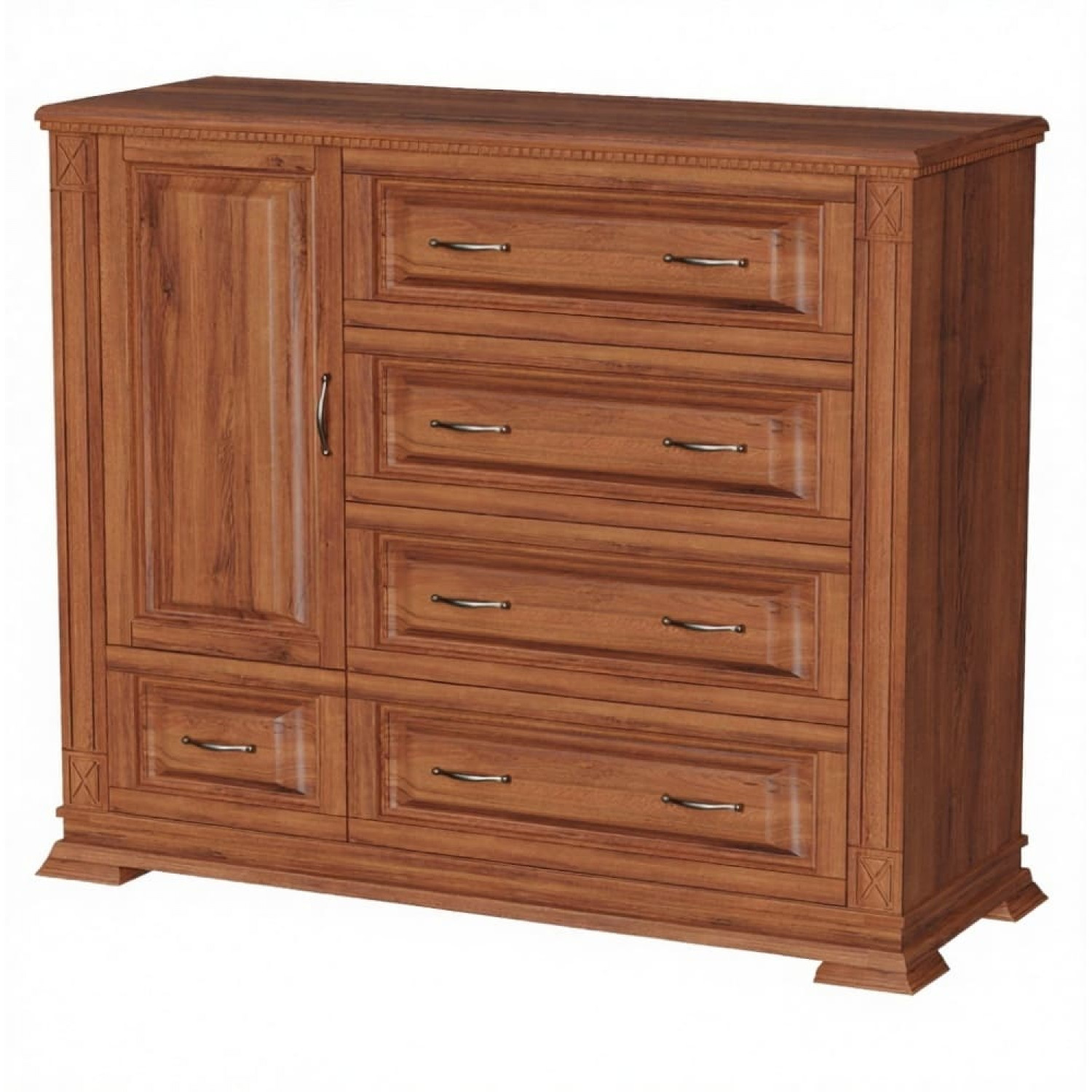 Деревянный комод Верди 125 выполнен из массива сосны,в данной модели вы можете самостоятельно указать цвет и материал,выбрав соответствующую опцию.