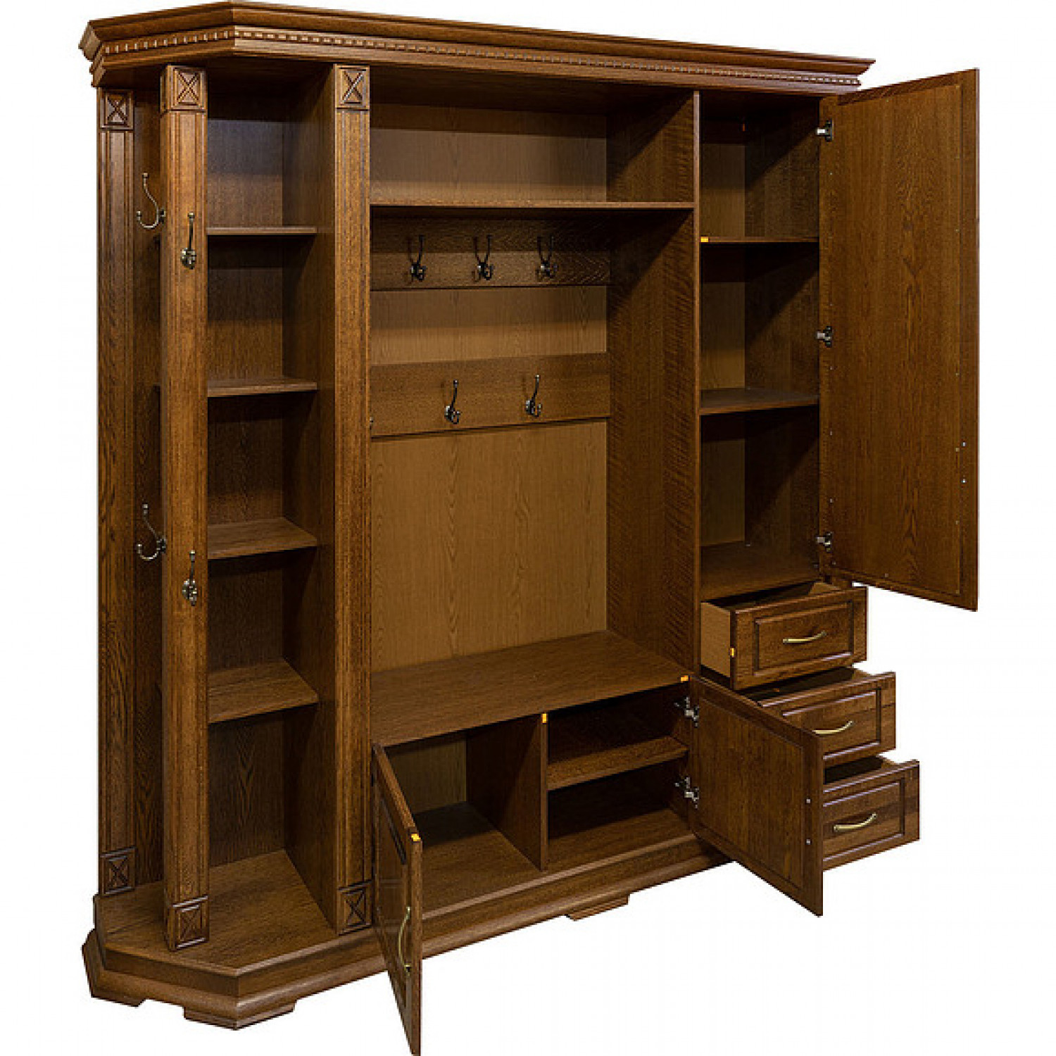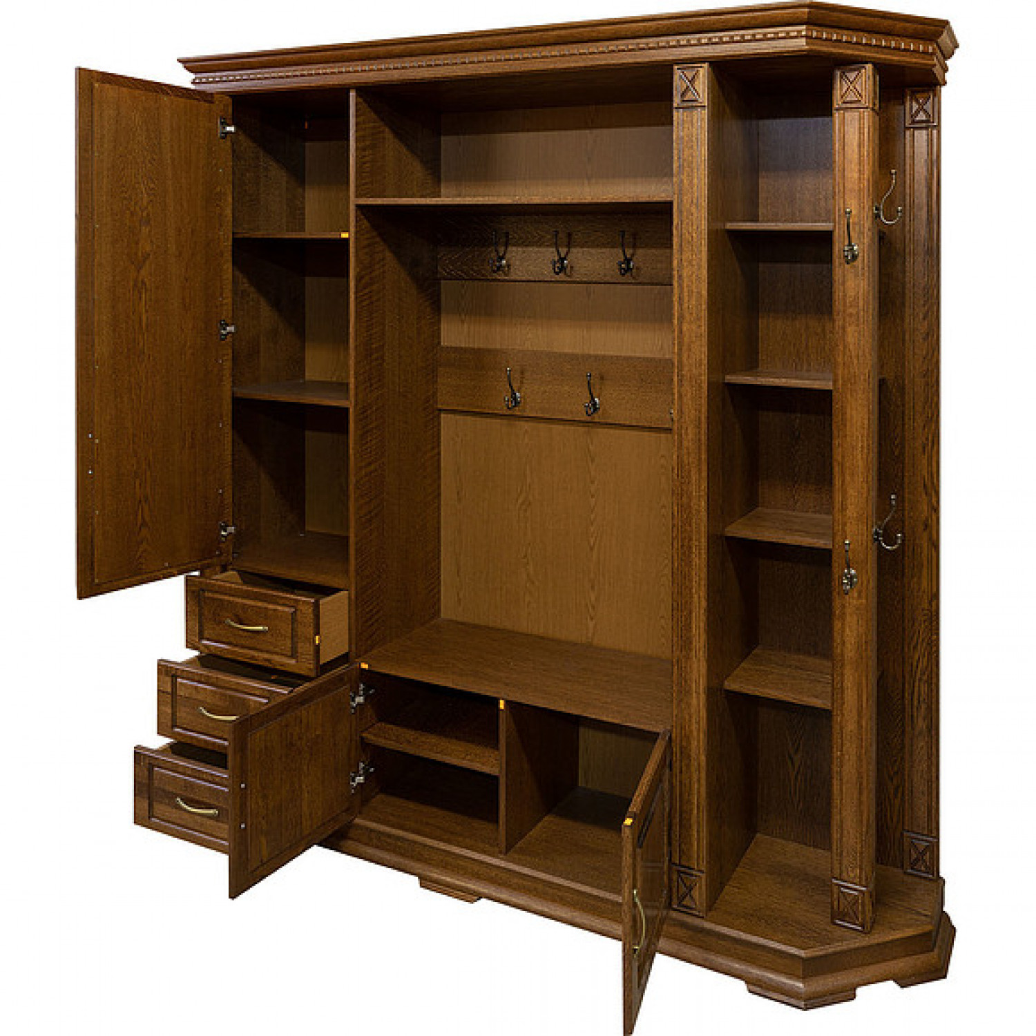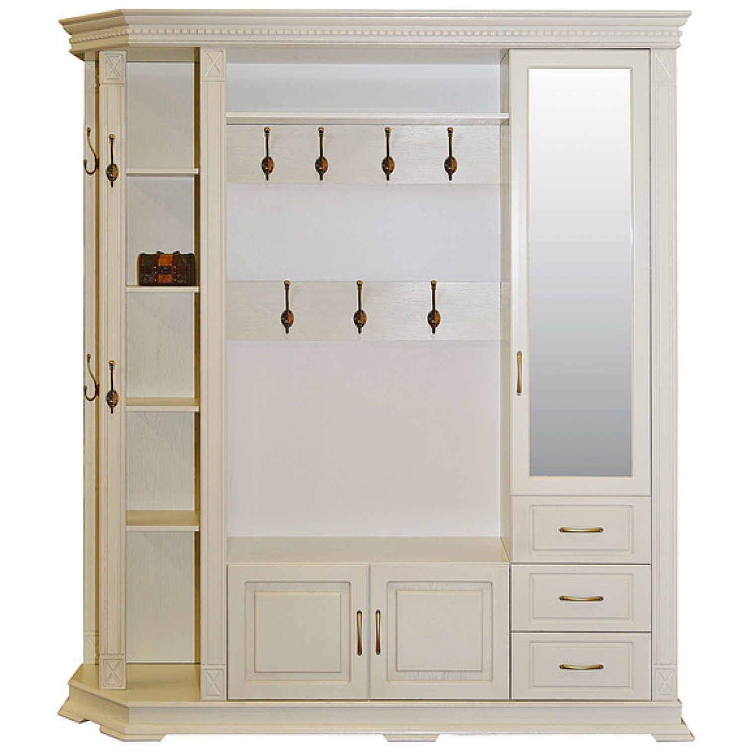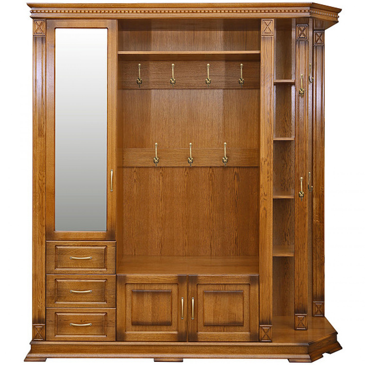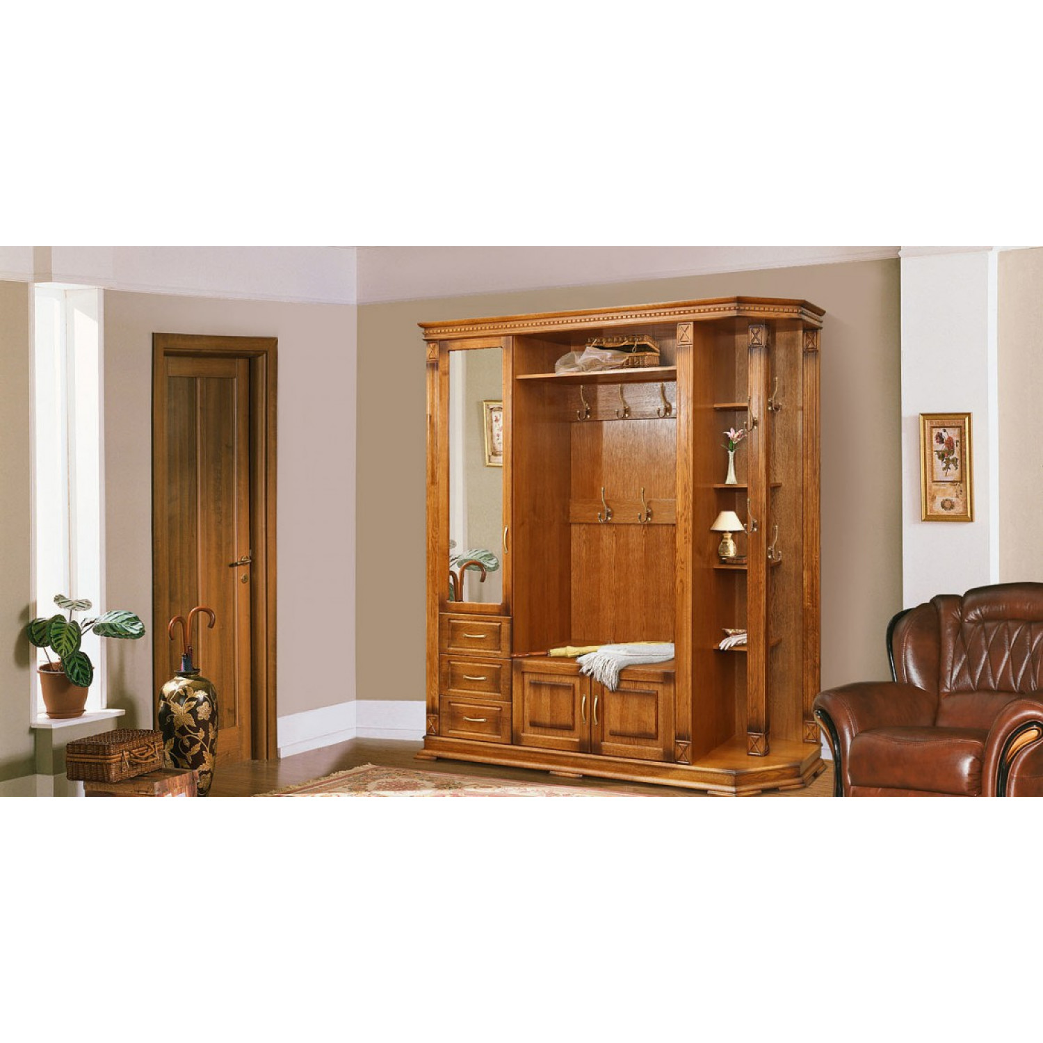 Деревянная Прихожая Верди 303 выполнена из массива сосны,в данной модели вы можете самостоятельно указать цвет и материал,выбрав соответствующую опцию.