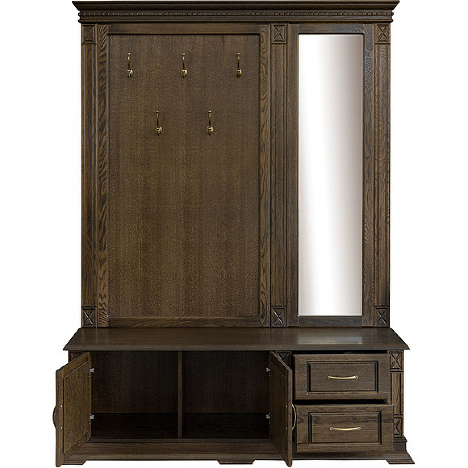 Деревянная Прихожая Верди 305 выполнена из массива сосны,в данной модели вы можете самостоятельно указать цвет и материал,выбрав соответствующую опцию.