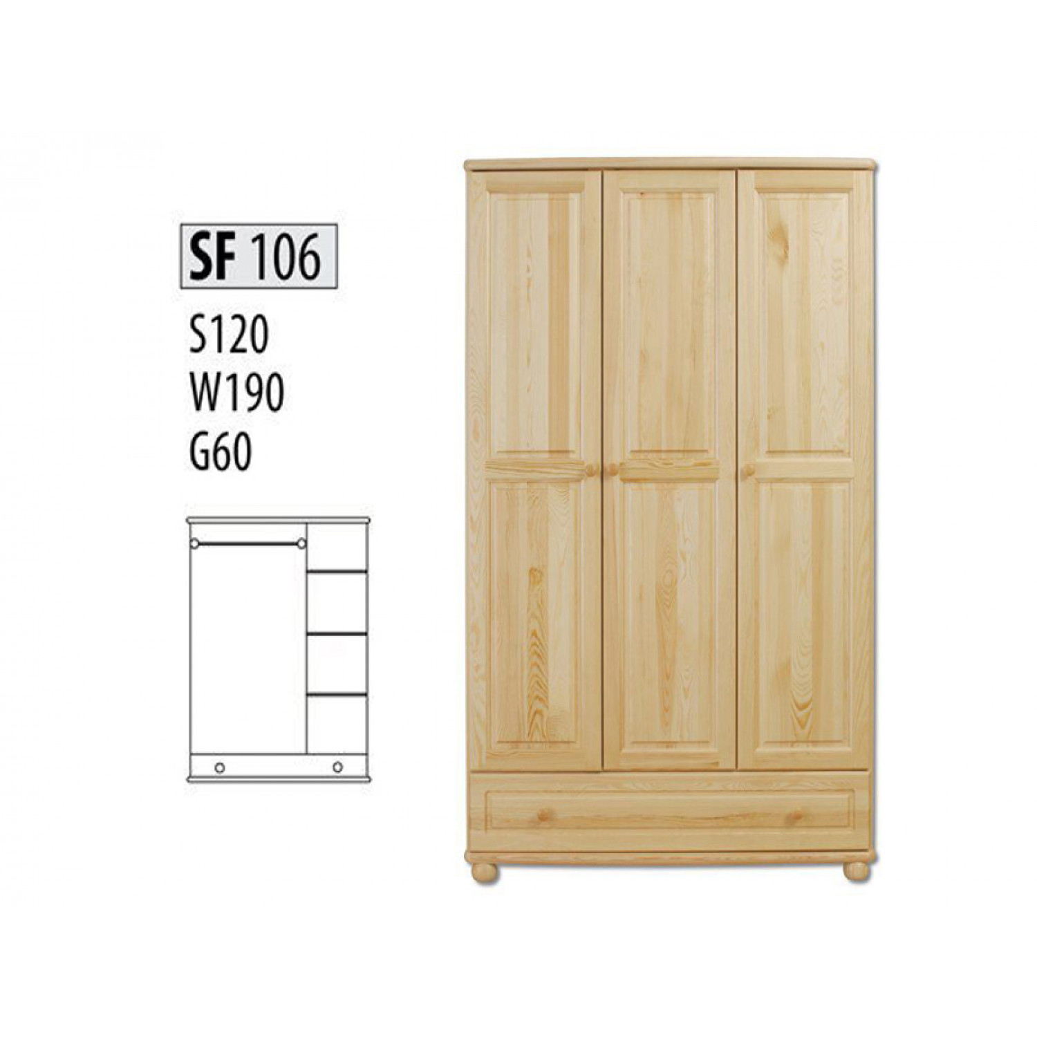 Деревянный шкаф №106 выполнен из массива сосны,в данной модели вы можете самостоятельно указать цвет и материал,выбрав соответствующую опцию.