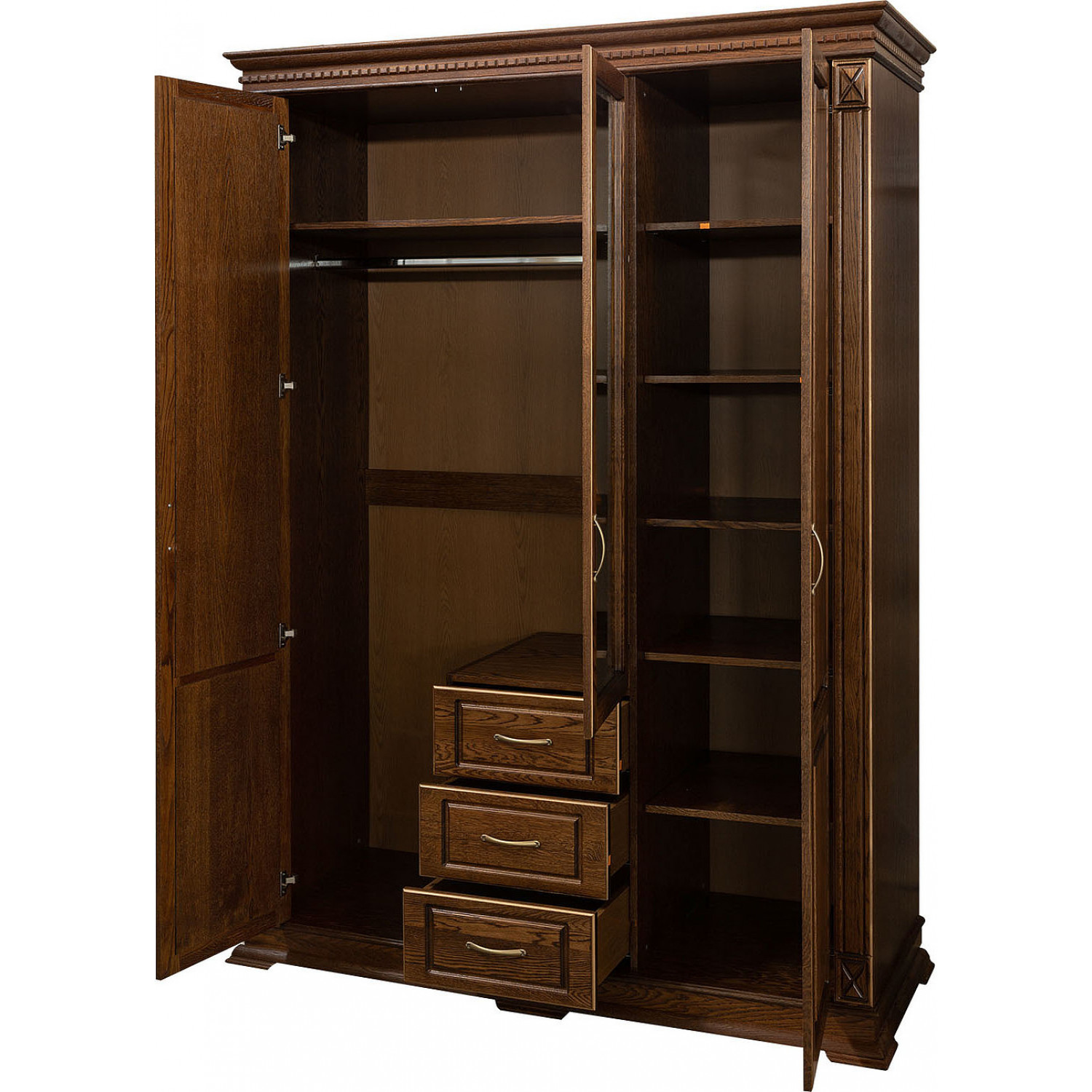 Деревянный шкаф Верди 325 выполнен из массива сосны,в данной модели вы можете самостоятельно указать цвет и материал,выбрав соответствующую опцию.